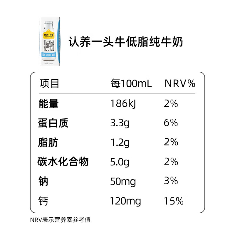 认养一头牛低脂纯牛奶200ml*10盒 牛奶整箱 轻食减脂好搭子 京东自营 一提装