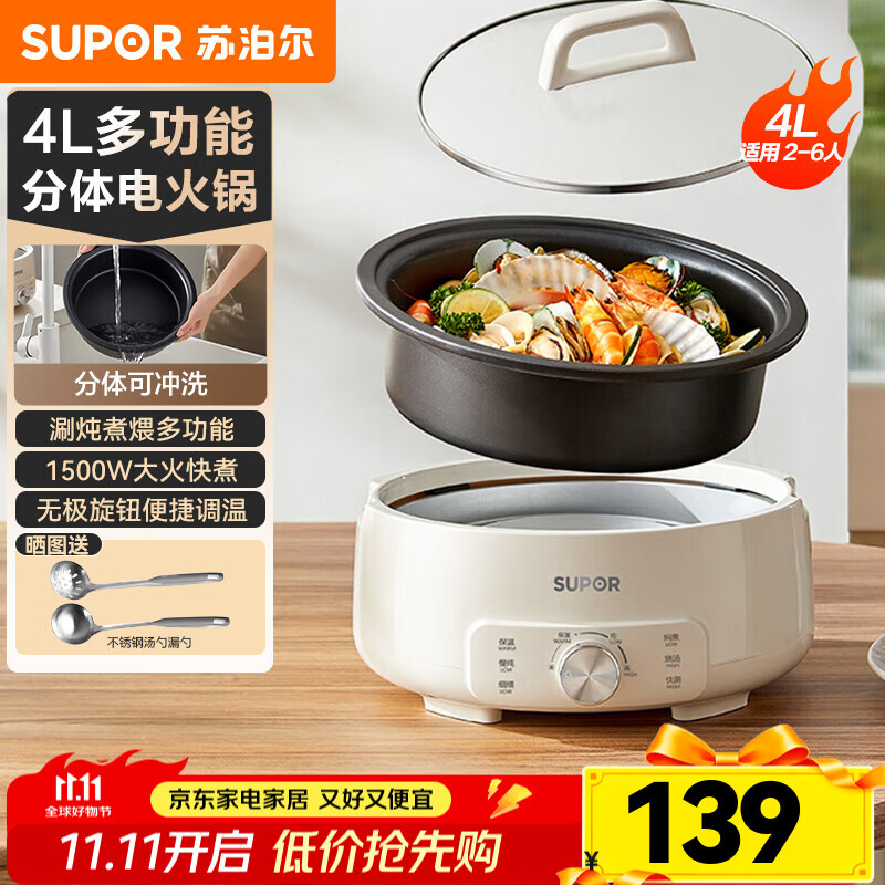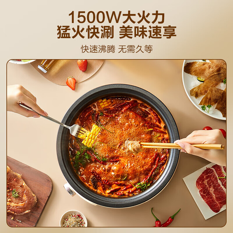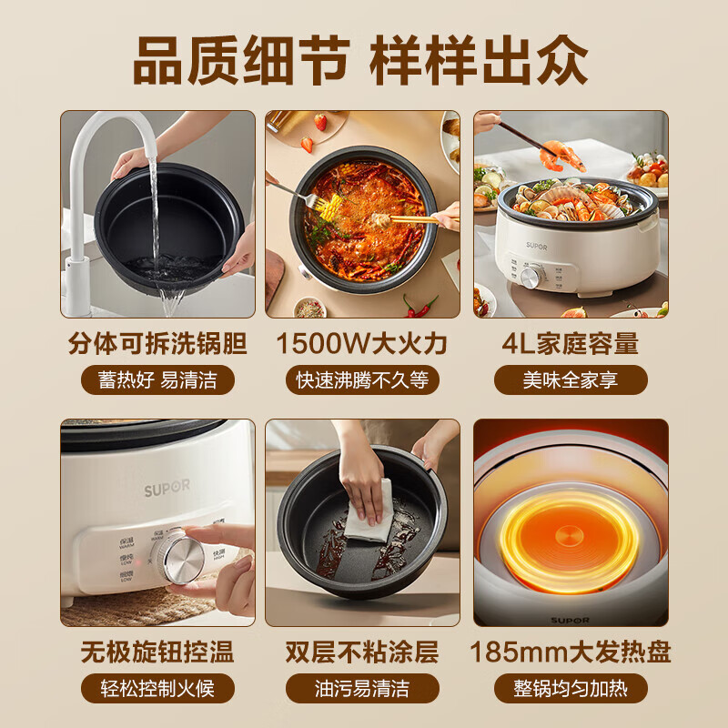 苏泊尔(SUPOR)多功能锅 电火锅专用锅不粘锅 一体插电多功能电煮锅 一锅多用煎炒一体电热锅 猛火速热 4L 【无极旋钮控温】适用2-5人