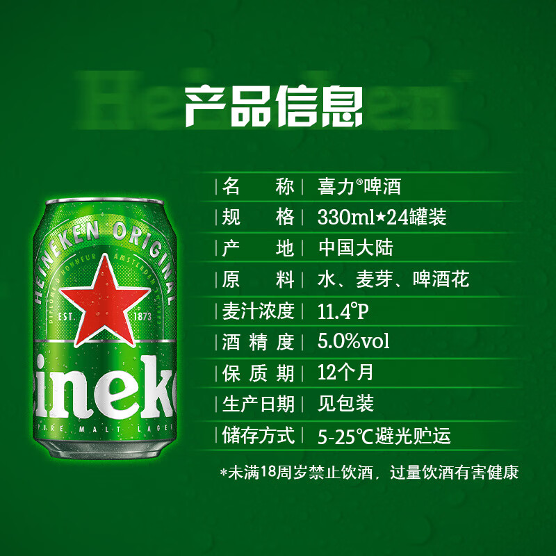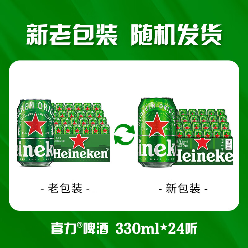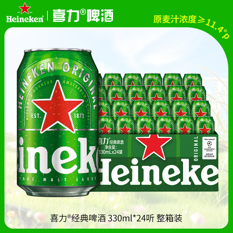喜力经典啤酒 麦芽浓度11.4 330ml*24听整箱装 婚宴喜酒送礼