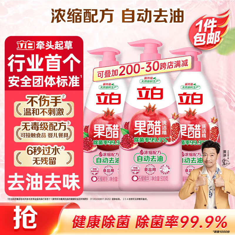 立白果醋浓缩洗洁精500g*3瓶 A类果蔬洗涤灵洗涤剂洗碗液除农残重油