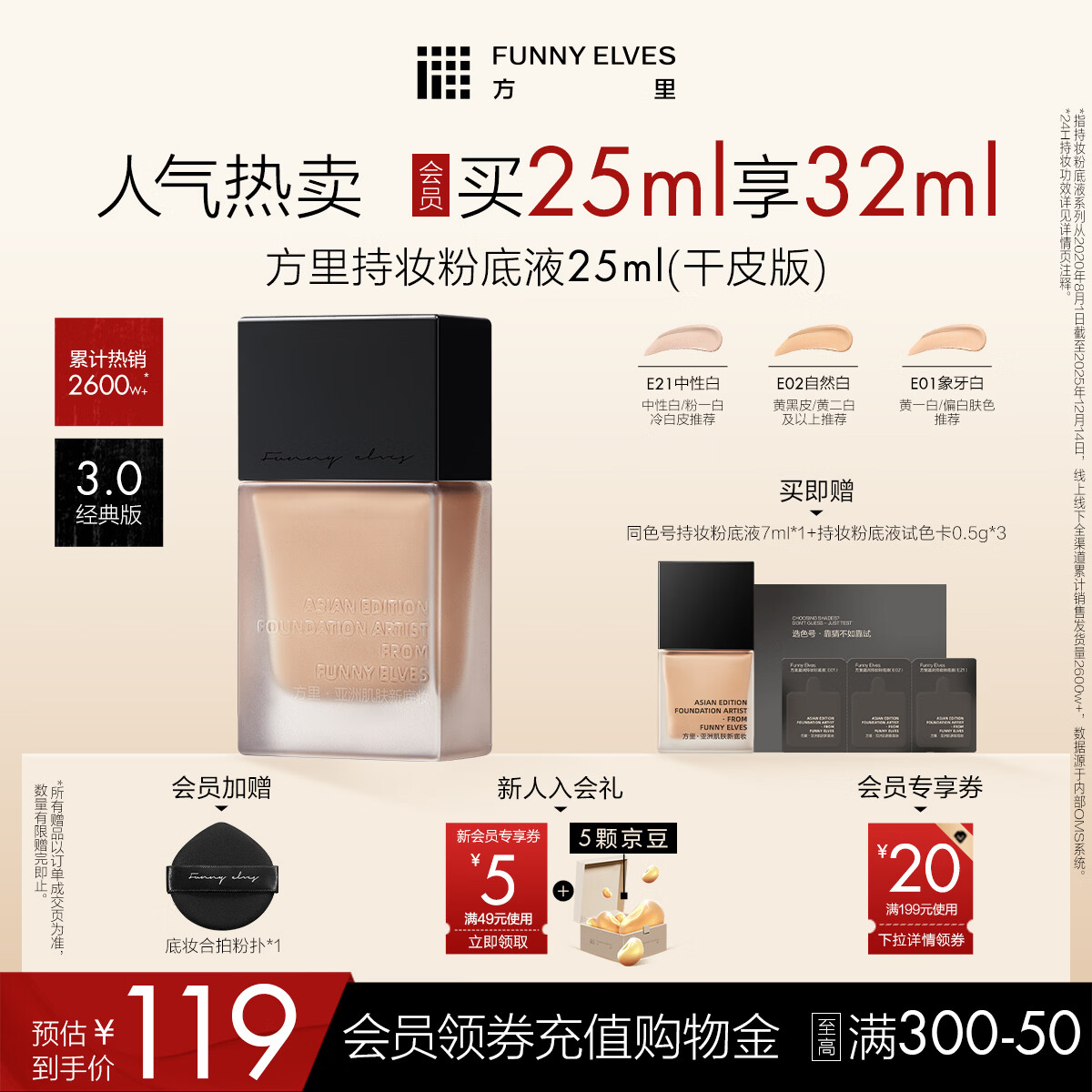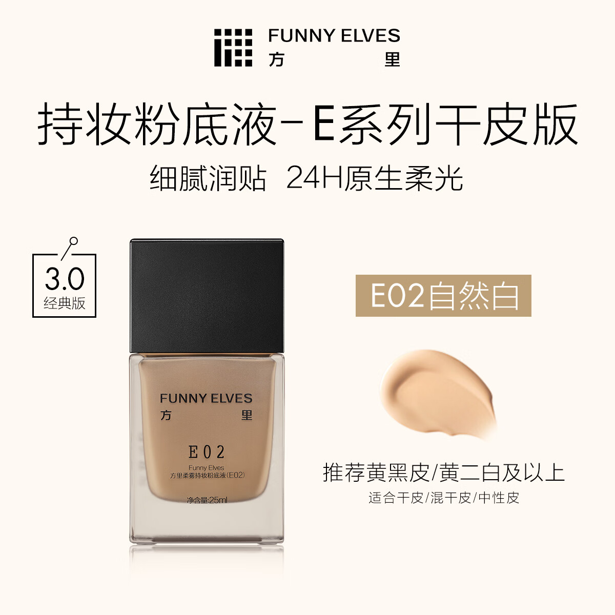 方里持妆粉底液E02 干皮自然白持妆服帖25ml