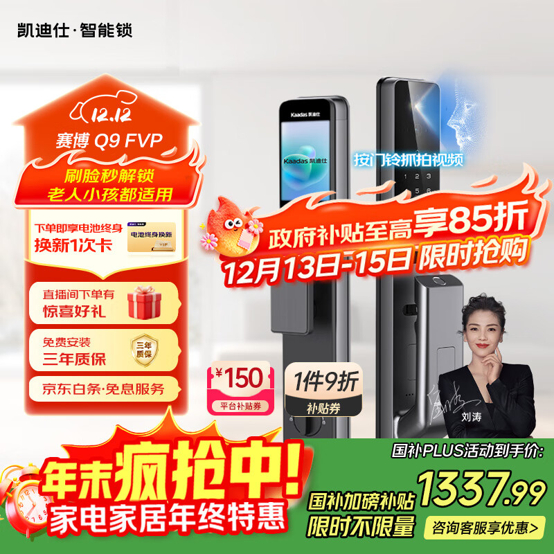 凯迪仕(kaadas)智能门锁指静脉智能锁指纹锁 可视猫眼人脸 赛博Q9 FVP