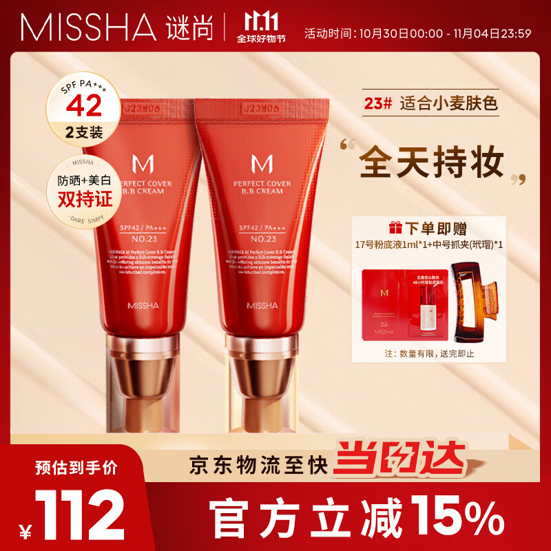 红BB润颜修容霜SPF42/PA+++经典款23号50ml*2支装遮瑕防晒粉底液