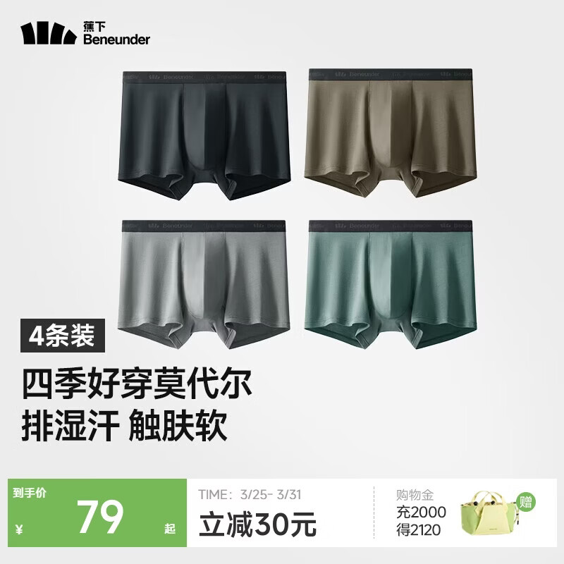 蕉下莫代尔内裤男士运动内裤裤衩四角平角裤无痕裸感透气款四季