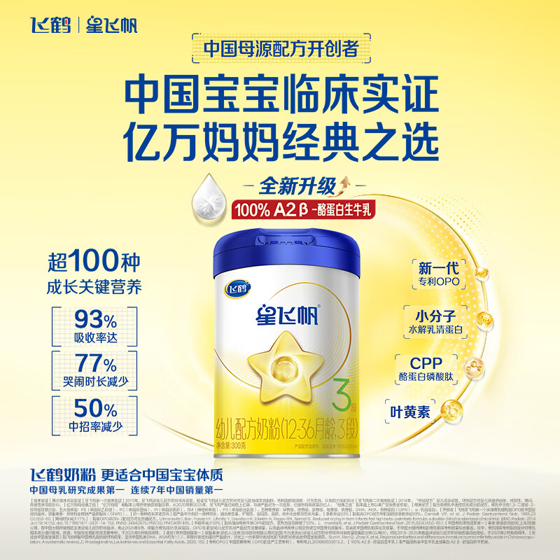 飞鹤星飞帆幼儿配方奶粉 3段(1-3岁) 300克 专利OPO【京东试用装】