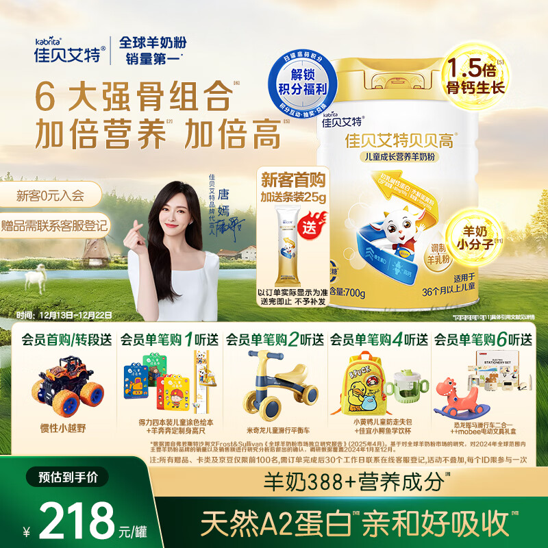 佳贝艾特(Kabrita)贝贝高 儿童成长配方学生羊奶粉4段(3岁以上)700克
