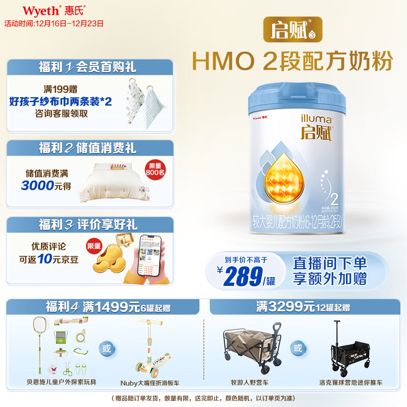 惠氏(Wyeth)启赋蓝钻HMO较大婴儿配方奶粉2段(6-12月)810g