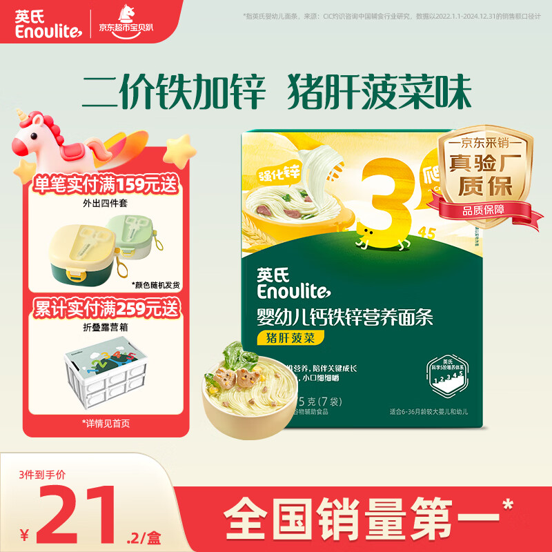 英氏婴幼儿面条猪肝菠菜味175g 宝宝辅食儿童早餐线面长直面 真验厂