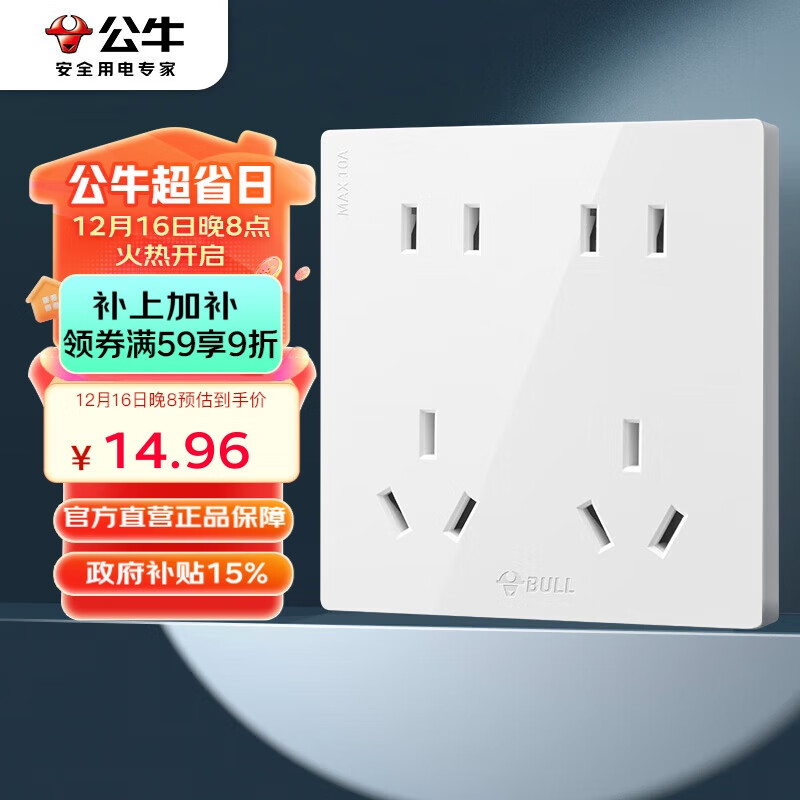 公牛(BULL)开关插座 G12系列 十孔插座86型插座面板 G12Z423 象牙白