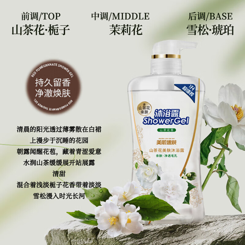 经典大容量沐浴露持久留香滋润保湿清新沐浴液红石榴山茶花 山茶花美肤沐浴露1L*1瓶