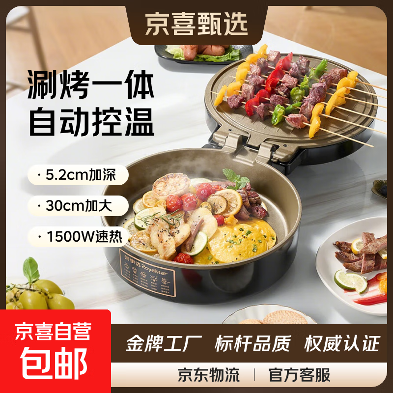 荣事达(Royalstar)电饼铛家用双面加热加大加深烙饼锅不粘煎饼机新款电饼档 黑色升级钛涂层【5.2cm加深/30cm加大】