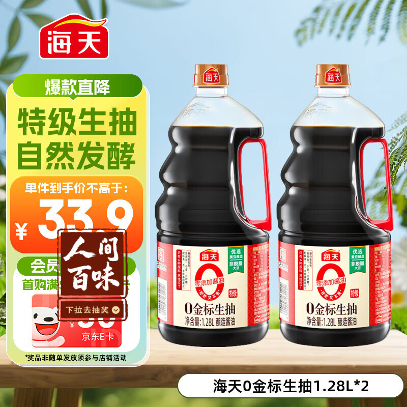 海天 0金标生抽酱油1.28L*2【特级酱油】金标系列 0添加防腐剂