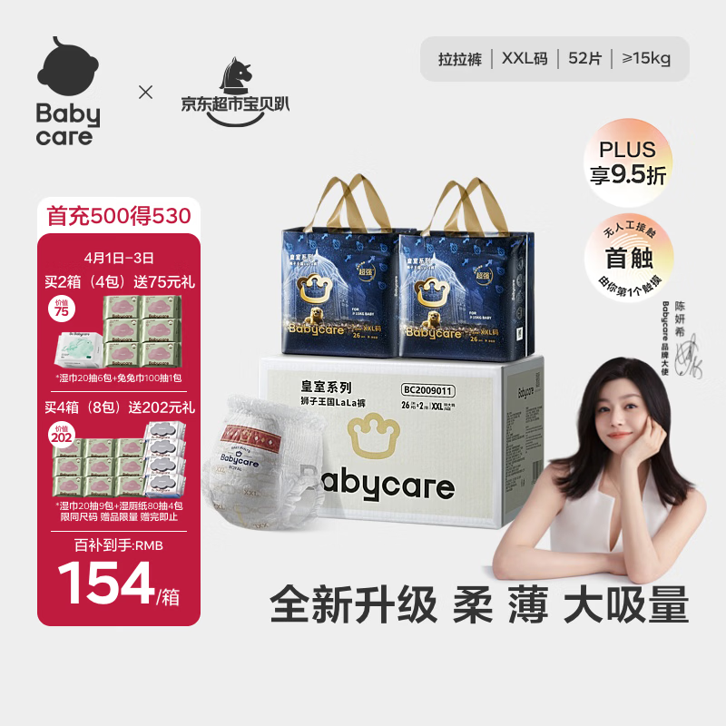 babycare皇室狮子王国拉拉裤箱装加大号XXL52片>15kg婴儿尿不湿透气亲肤