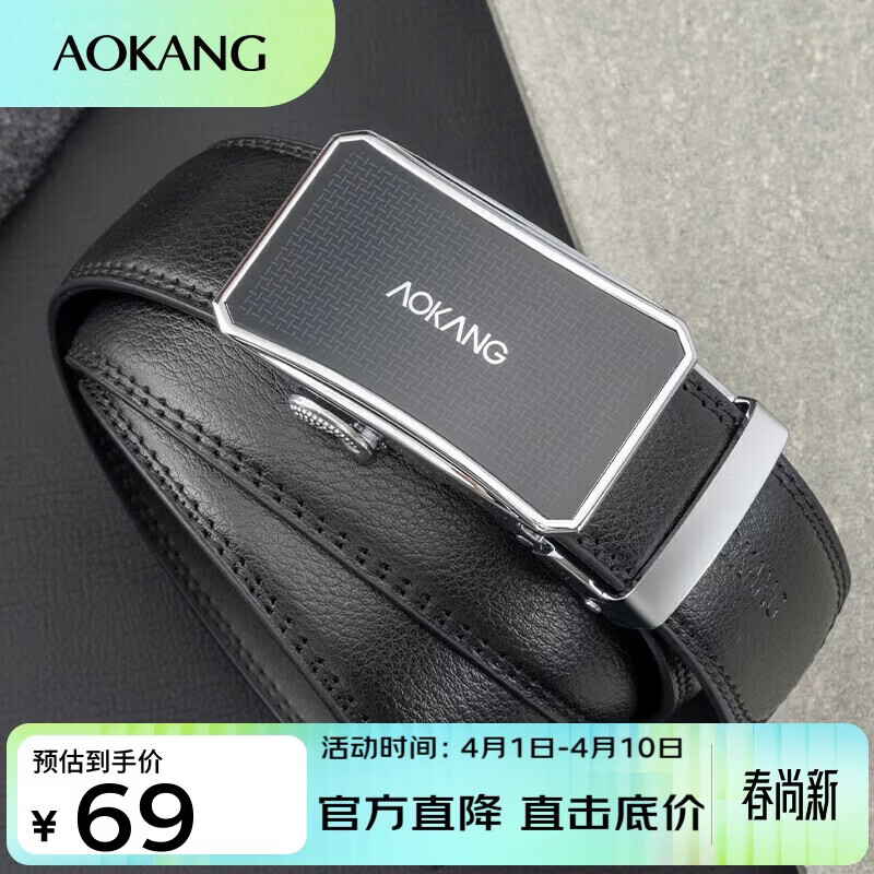 奥康男士皮带牛皮自动扣腰带商务裤带情人节礼物送男友老公