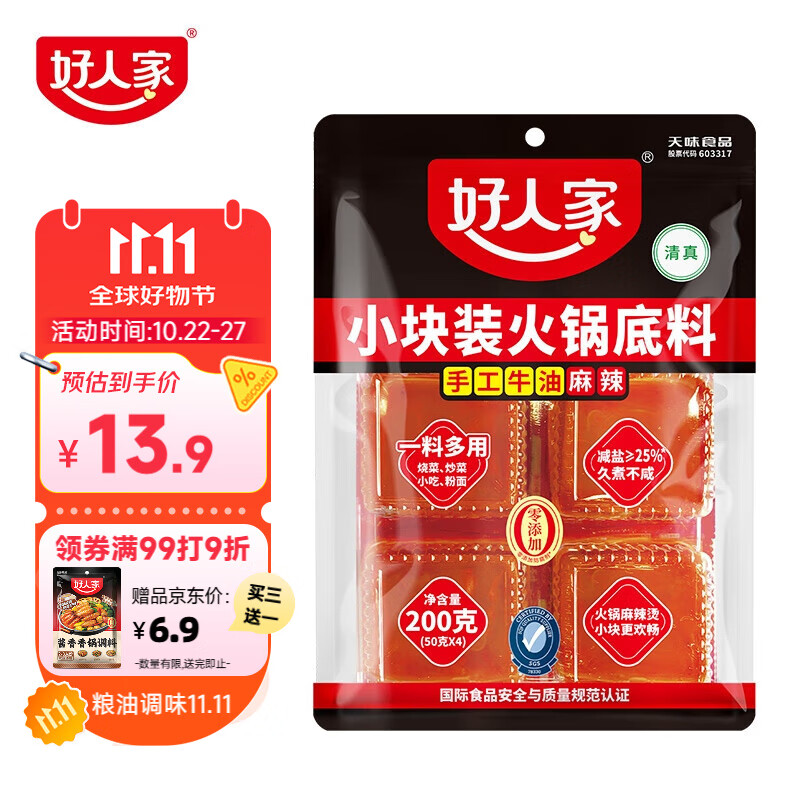 好人家 火锅底料手工牛油火锅冒菜麻辣烫串串家庭聚会晚调料200g