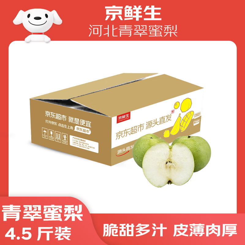 京鲜生 河北青翠蜜梨 净重4.5斤 单果250g+ 青皇冠梨 生鲜水果 源头直发
