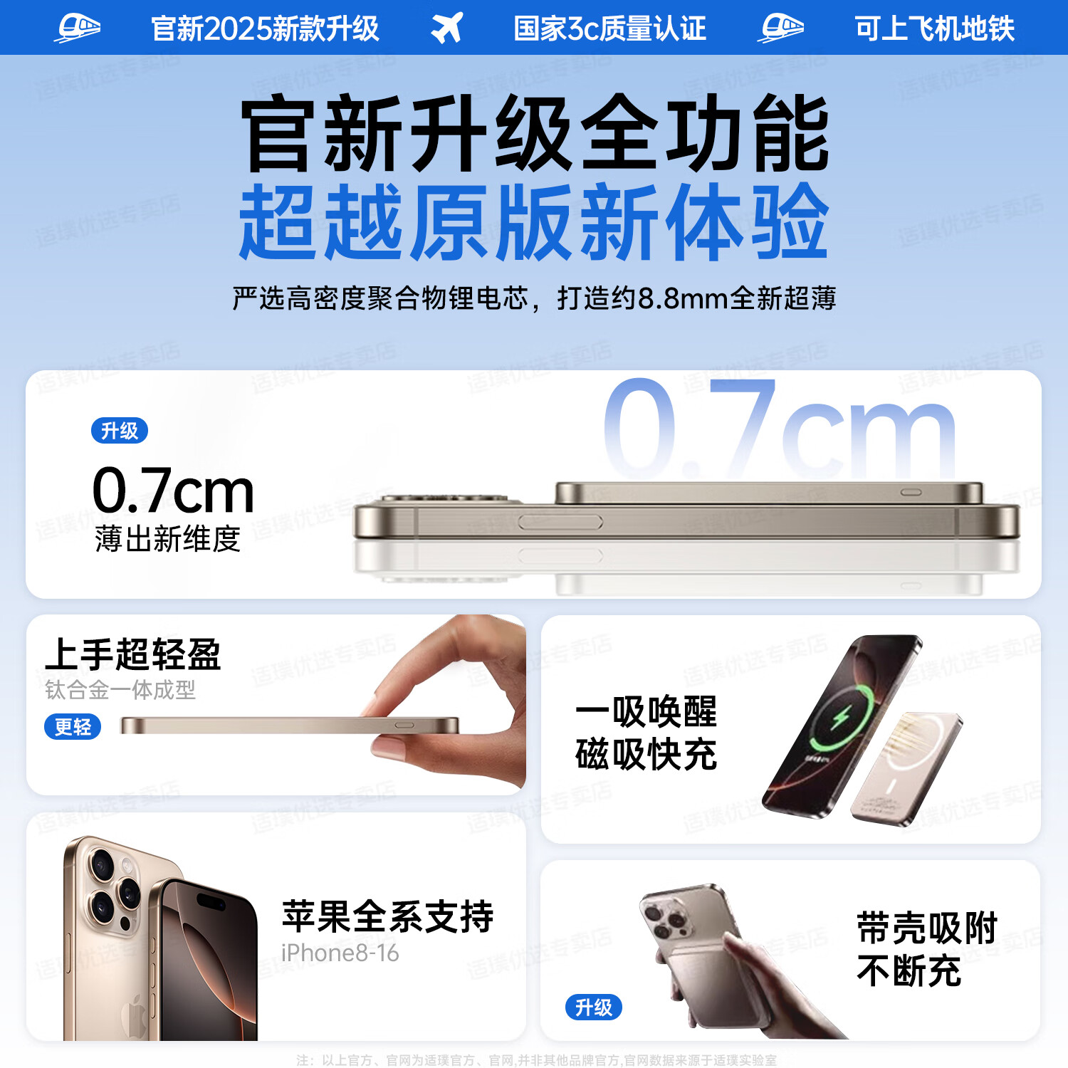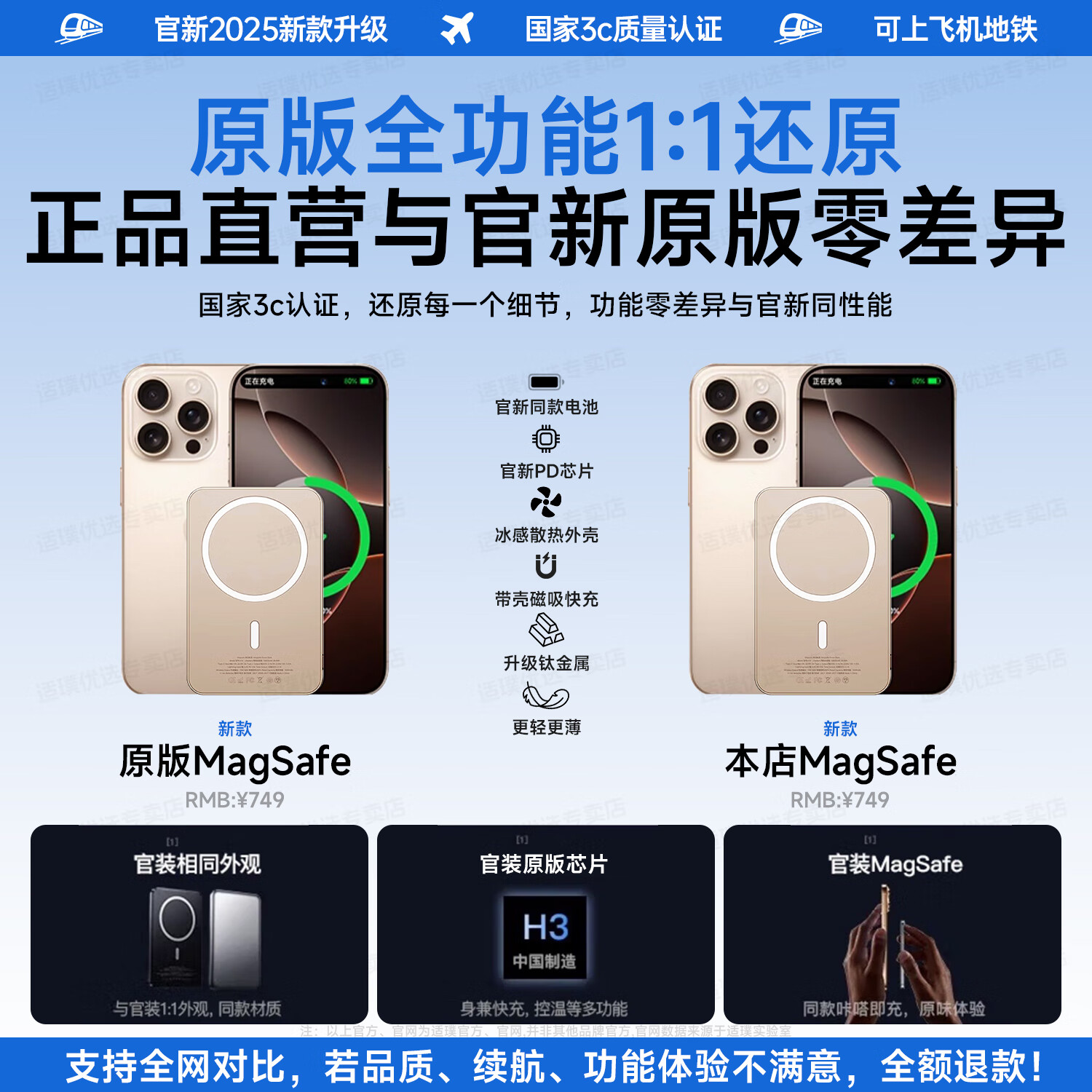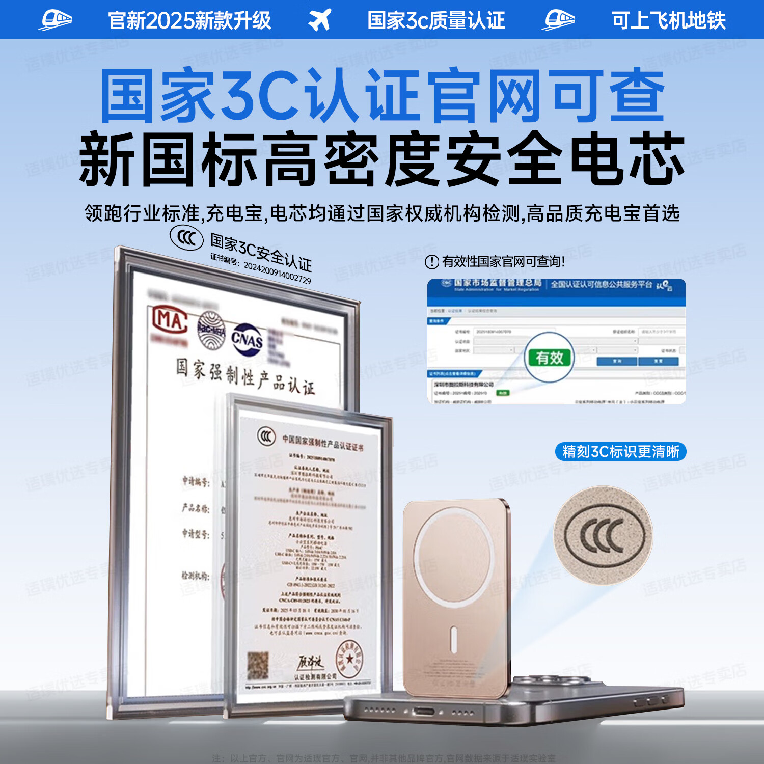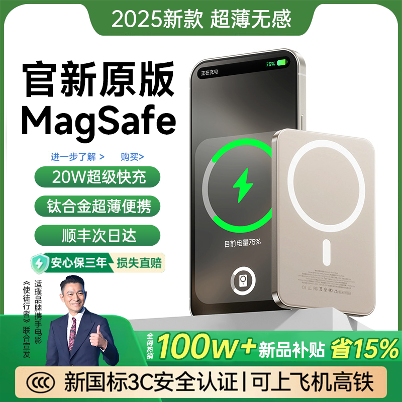 适璞【国家3C认证丨20000M】MagSafe磁吸充电宝移动电源适用苹果可上飞机快充大容量毫安小巧便携无线 【20000M】钛金色丨超级快充丨提速9999% 国家3C认证丨原版1:1丨所有手机通用丨可上飞机