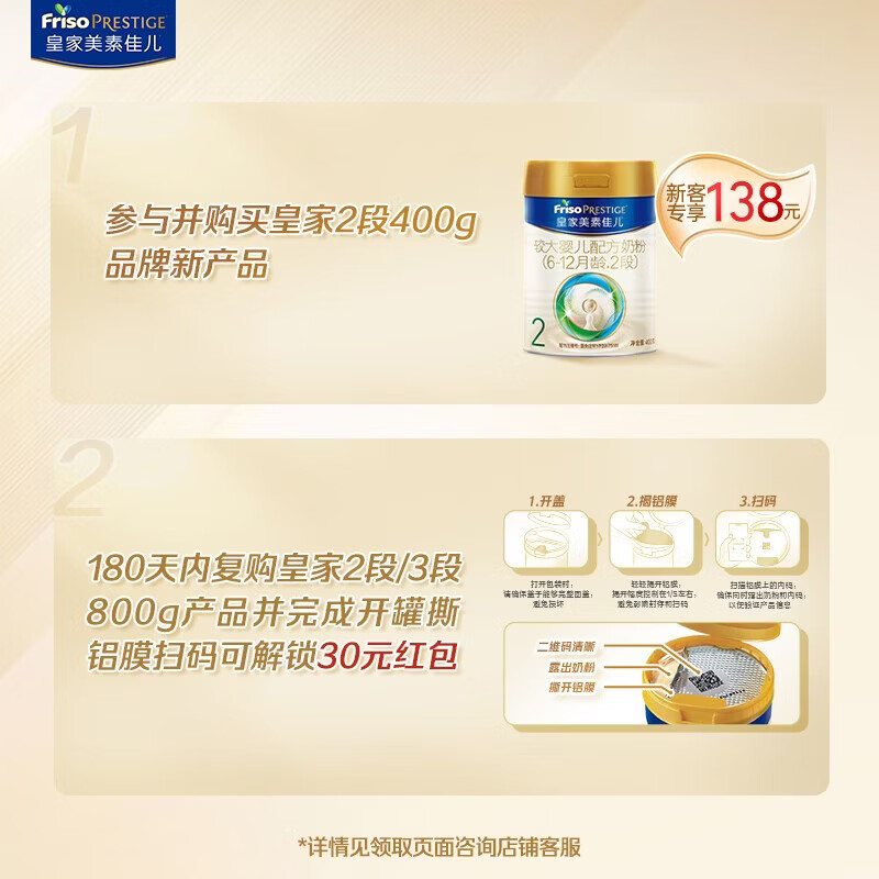 美素佳儿(Friso)皇家较大婴儿配方奶粉2段(6-12个月)400克 乳铁蛋白 新国标
