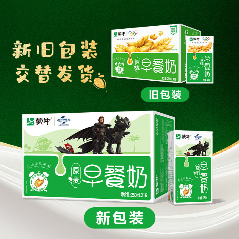 蒙牛早餐奶麦香味250ml*16盒 早餐伴侣燕麦醇香 送礼盒装新老包装交替