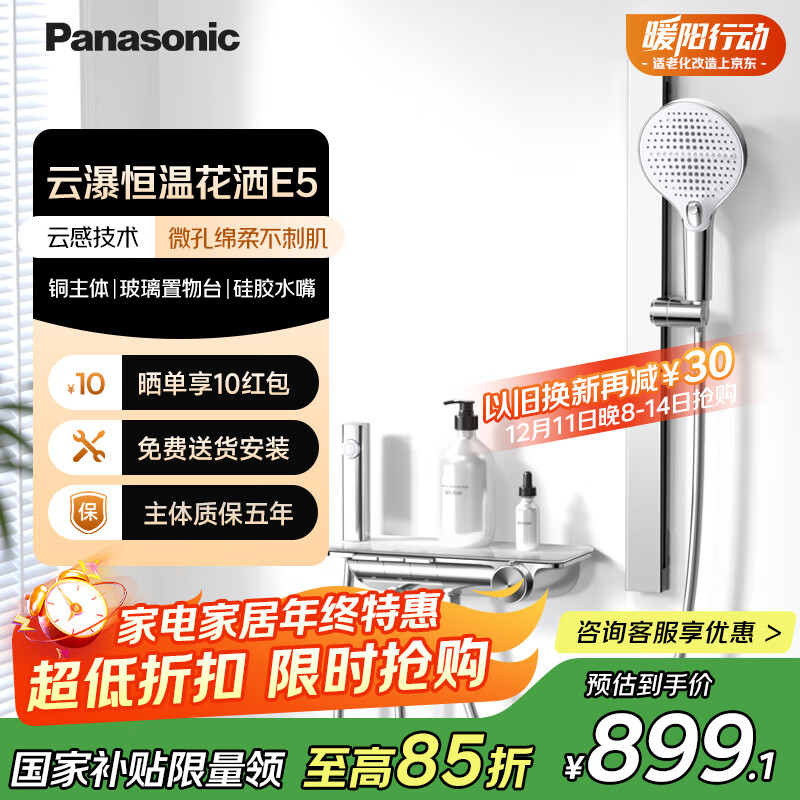 松下(Panasonic)全铜恒温小淋浴套装E5 简易无顶喷花洒智能家用浴室