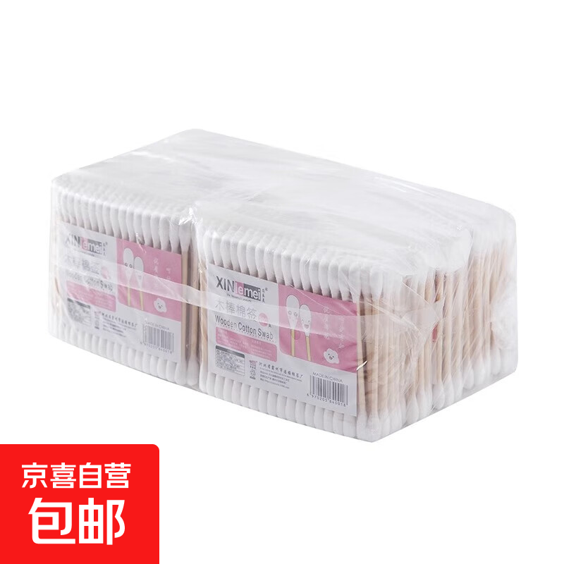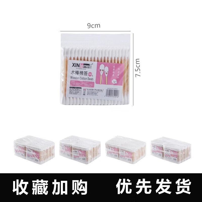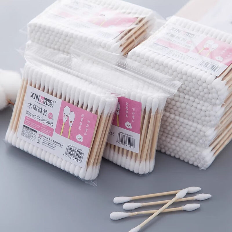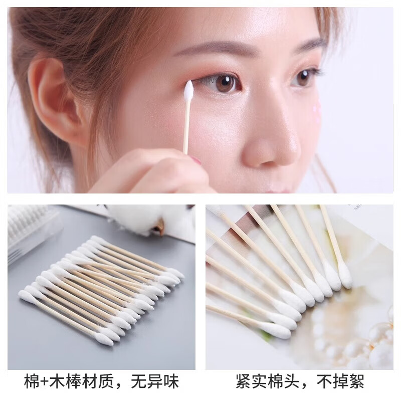 清洁棉签木棒口腔护理假牙清洁化妆棉棒棉花螺旋掏耳朵挖耳勺双头 木棒棉签-100支/袋(袋装)