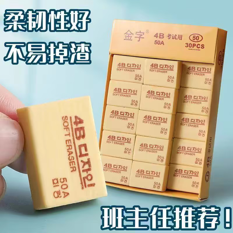 橡皮擦干净无痕4B小学生橡皮擦幼儿园儿童2b橡皮美术生绘图专用 班主任推荐50A黄色【5个】