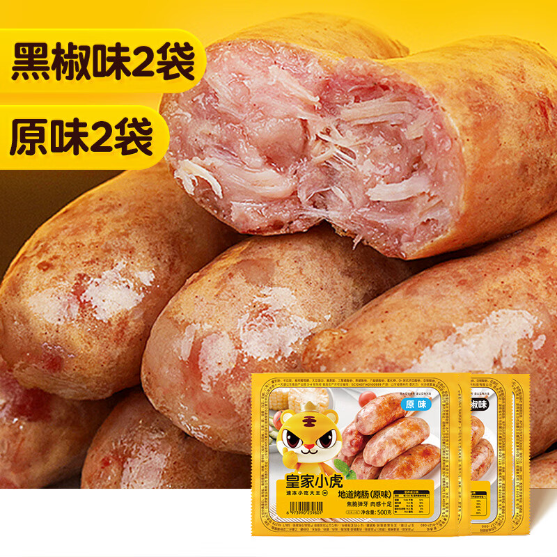 皇家小虎烤肠40根/4斤原味黑椒火山石超值肉肠早餐香肠火腿肠热狗源头直发