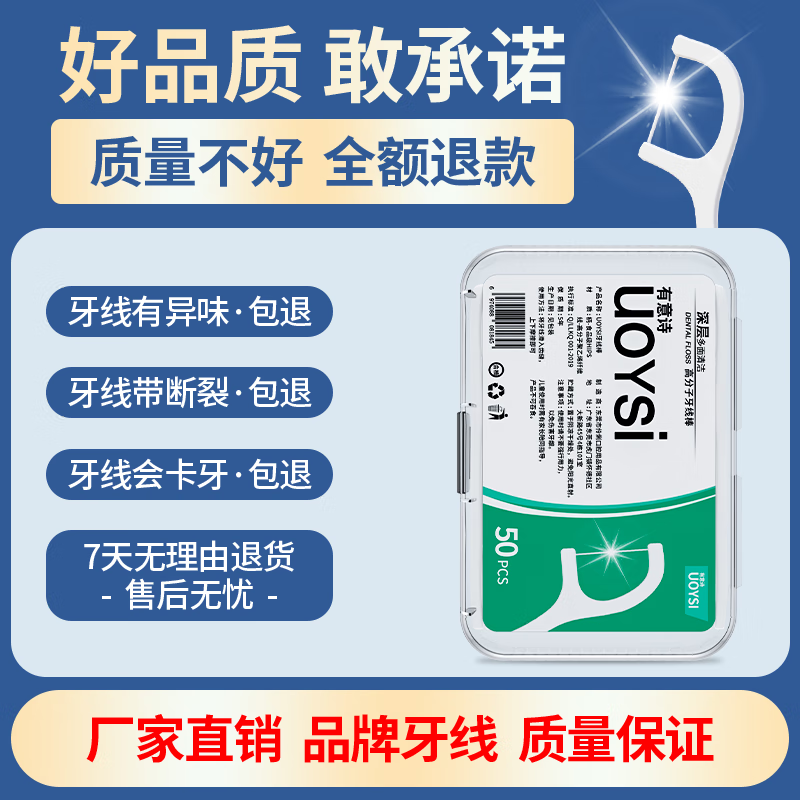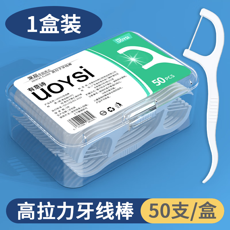 【京东物流】精品牙线UOYSI超细家庭装便携清洁牙线 1盒【精美盒装】50支