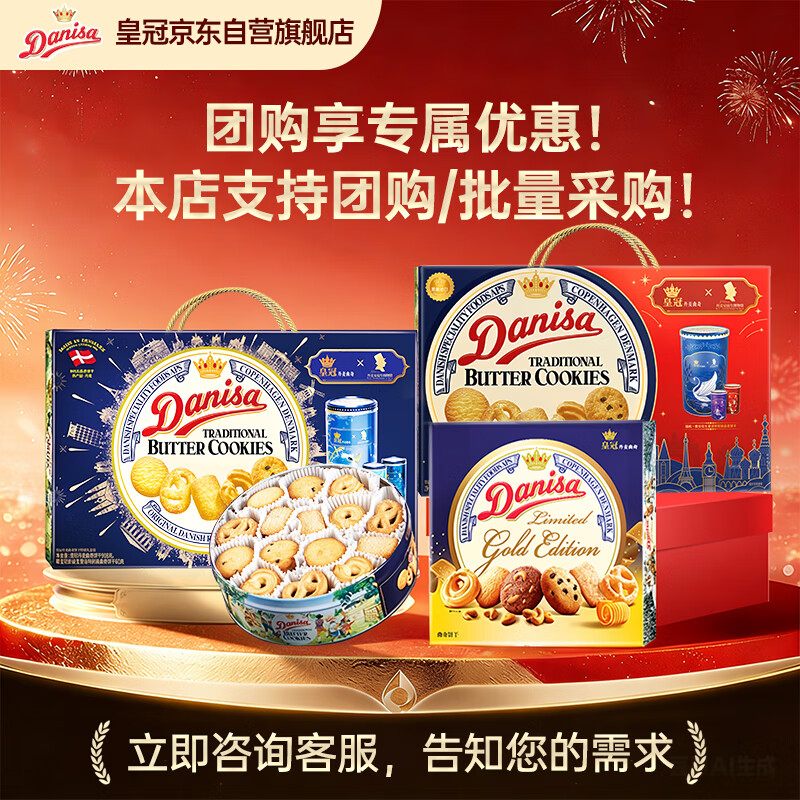 皇冠(danisa)丹麦曲奇饼干礼盒368g休闲零食团购囤货送礼物印尼进口