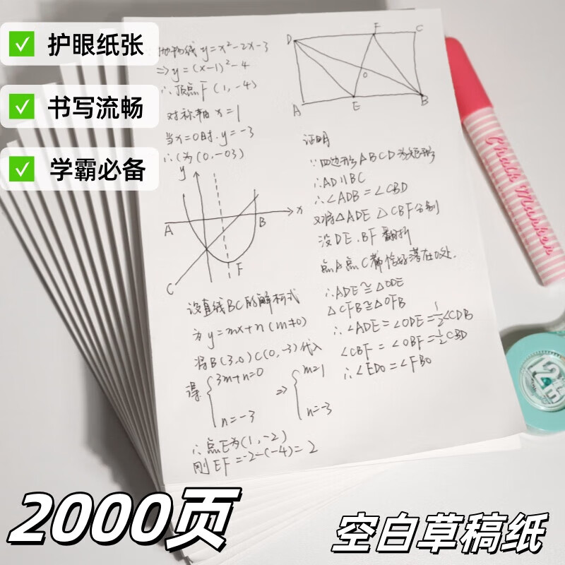 草稿本草稿纸a4b5空白加厚学生用小学初中高中生考研专用数学演草纸草稿本子纸加厚可撕不开胶 【共40张】护眼草稿纸:1本