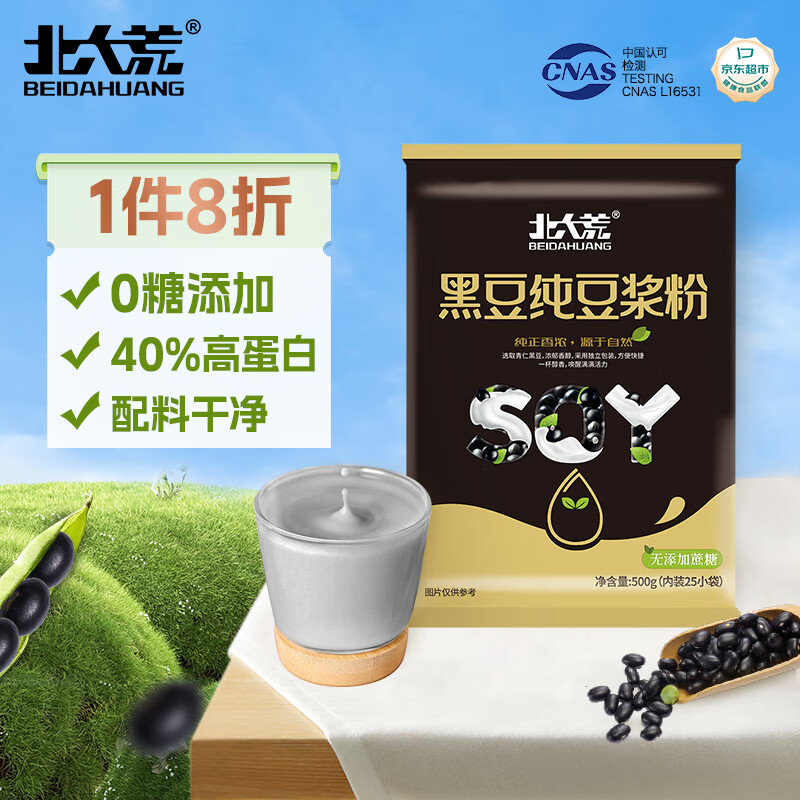 北大荒黑豆纯豆浆粉500g(25袋)无糖添加高植物蛋白冲饮谷物早餐孕妇