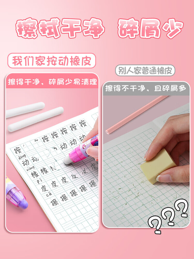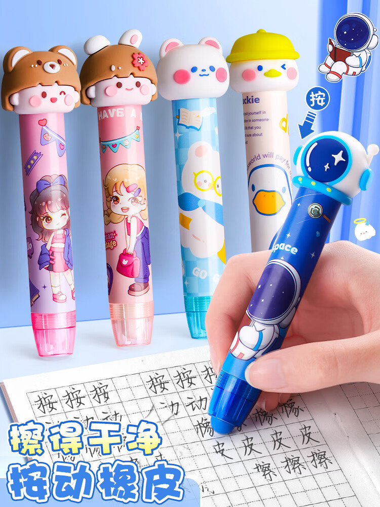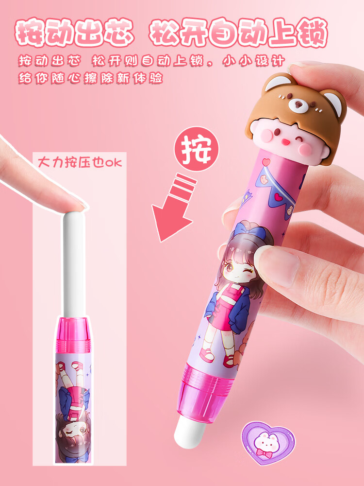 按动橡皮擦小学生专用铅笔象皮擦干净不留痕幼儿园儿童少屑像笔擦创意卡通可爱像皮擦笔型可伸缩橡皮替芯自动 1支装/桃心汽水