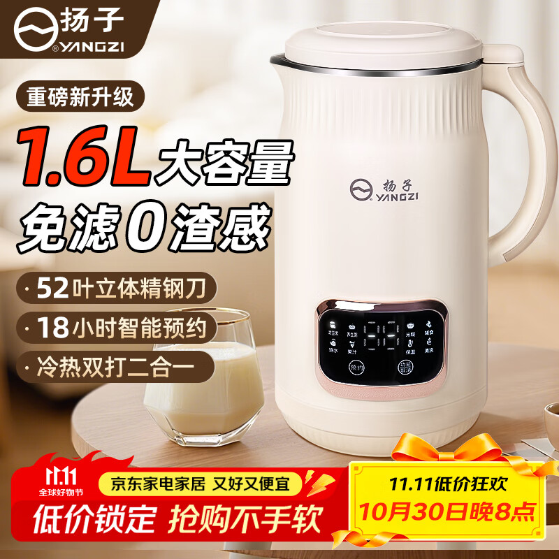 扬子(YANGZI)破壁机家用豆浆机全自动免煮2025新款榨汁机5-6人辅食水果豆浆多功能免洗免滤细破壁免泡非静音 【直播同款】大容量元气舱+无渣轻音1.6L