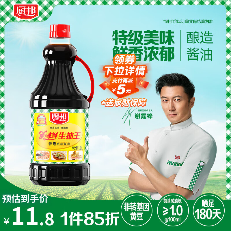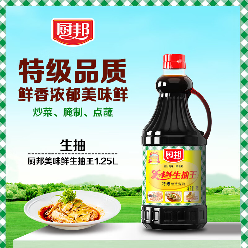 厨邦酱油 美味鲜生抽王 酱油 生抽【特级黄豆酱油】1.25L 酿造酱油