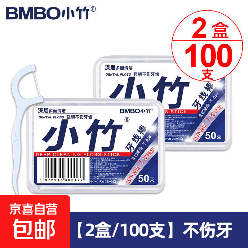 【京东物流】小竹牙线超细家庭便携一次性家用牙线囤货装 2盒100支【精美盒装】