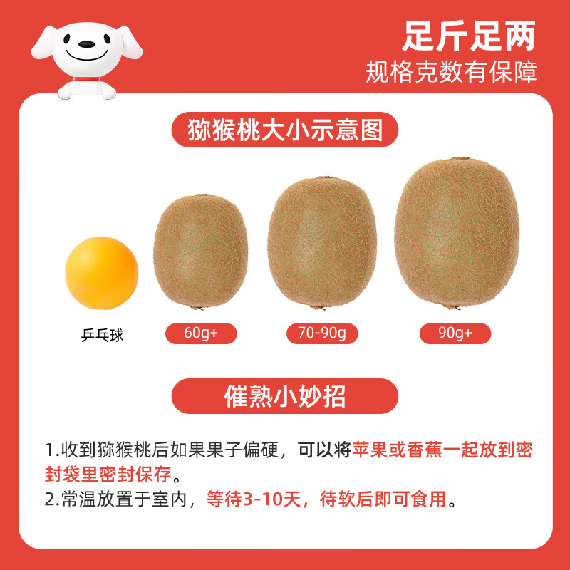 京鲜生 贵州修文猕猴桃绿心猕猴桃 24枚单果70g+ 生鲜水果 源头直发