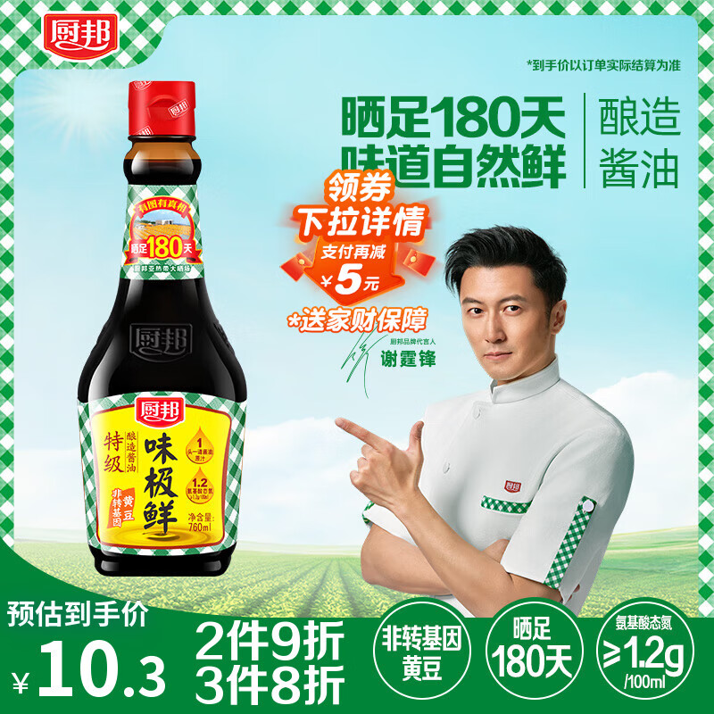 厨邦酱油 味极鲜酱油 生抽【特级黄豆酱油】760ml 酿造酱油 调味品