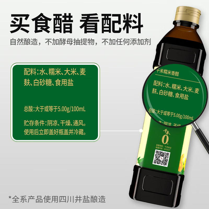 千禾糯米香醋5度 1L【0添加】凉拌饺子蘸料家用酿造食醋
