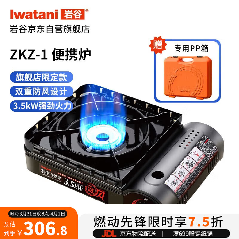 岩谷(Iwatani)户外双重防风卡式炉 便携炉露营火锅 3.5kW强劲火力 限定ZKZ-1