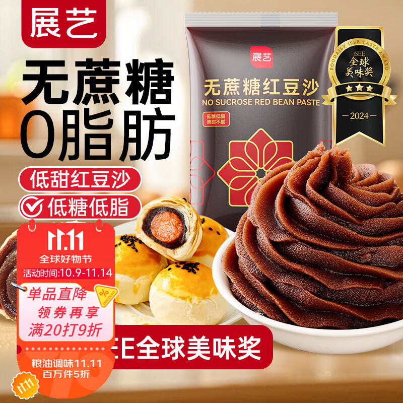 展艺无蔗糖红豆沙馅 糕点馅料中秋月饼包子豆沙包蛋黄酥烘焙原料 500g