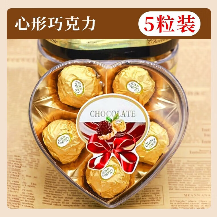 【过节送礼】榛果威化巧克力1盒5粒婚庆喜糖休闲零食礼物礼盒装 5粒心形盒装*1盒