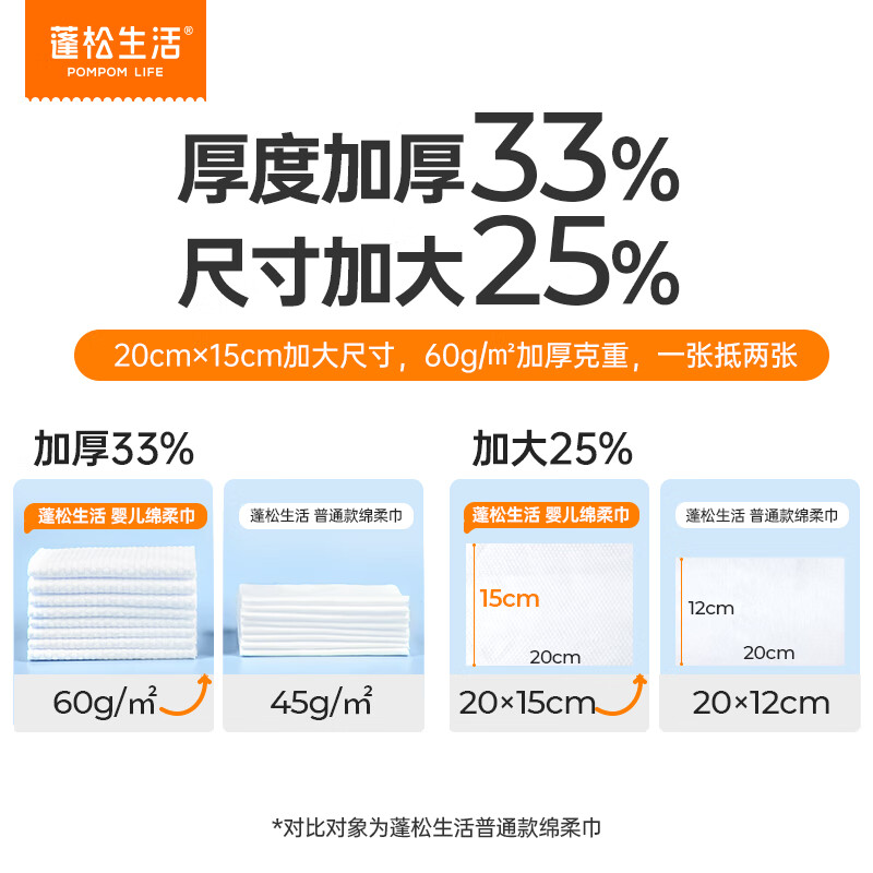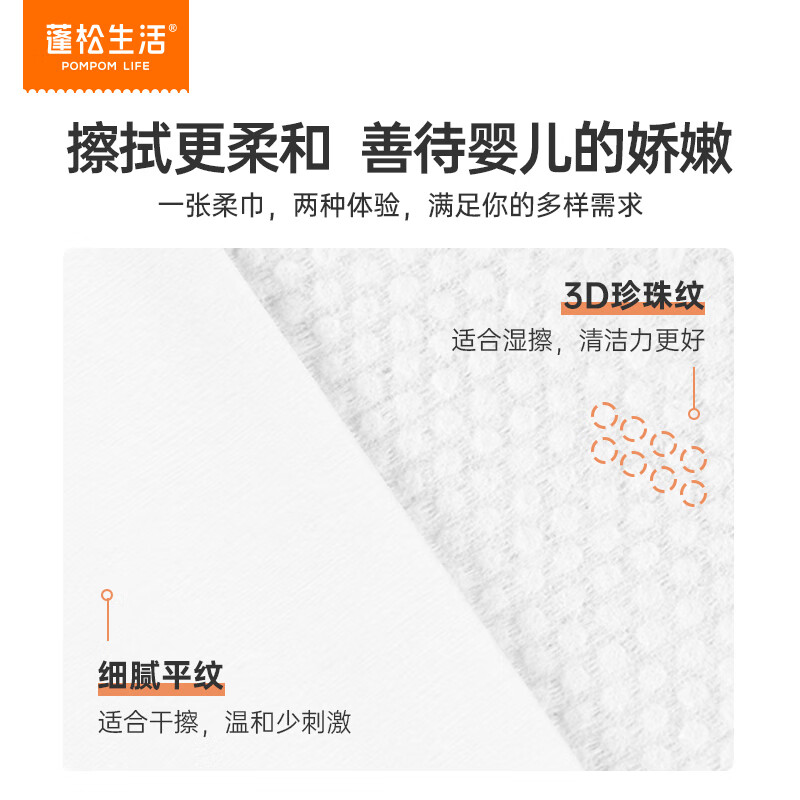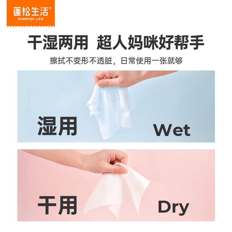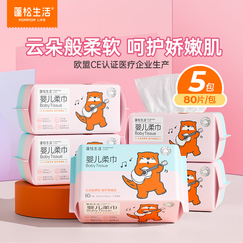 蓬松生活 洗脸巾柔巾干湿两用洗面巾母婴清洁 干湿两用一次性洁面巾 【双色款】婴儿绵柔巾80抽*5包