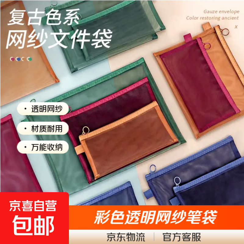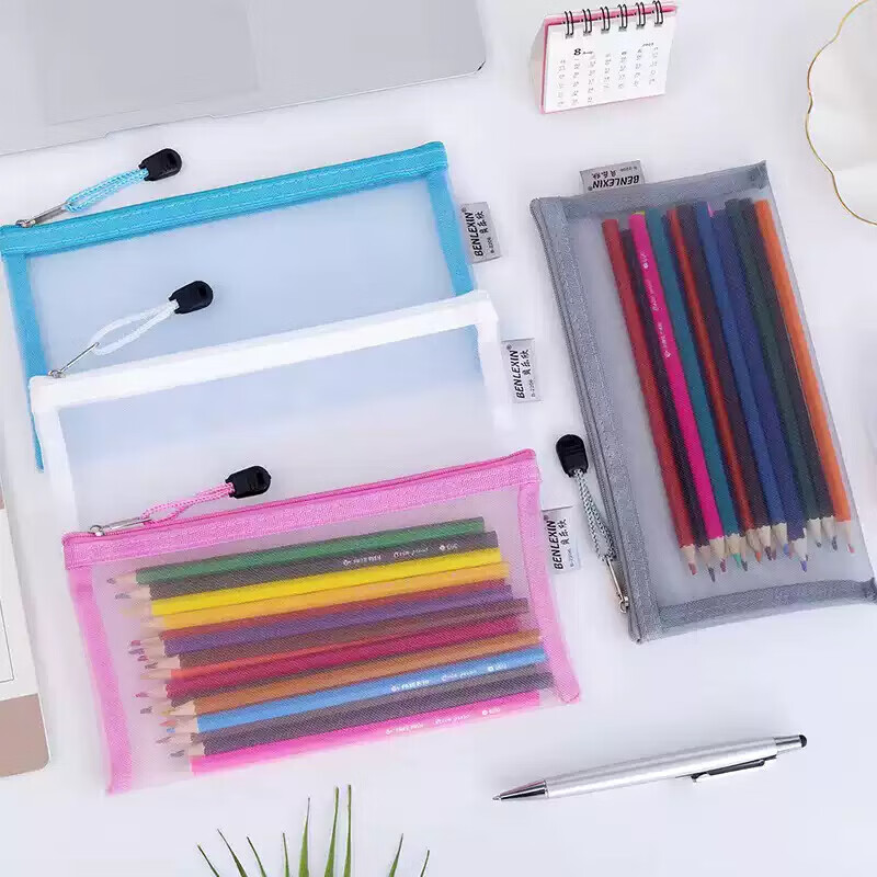 【店铺热销】透明笔袋简约文具便携网纱收纳袋学生大容量韩系考试专用铅笔 A6网纱笔袋【颜色随机2个】