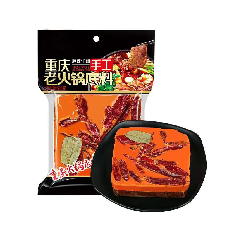 【专享】重庆牛油火锅底料麻辣火锅底料小块独立包装50g 【家庭装】火锅底料500g一袋