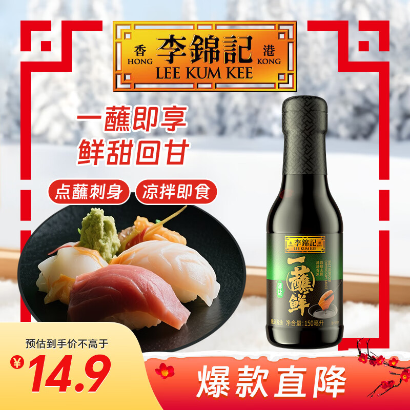 李锦记 薄盐一蘸鲜150ml【减盐】海鲜刺身 点蘸凉拌 180天酿造 生抽酱油