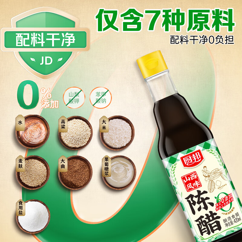 厨邦山西陈醋420ml 【配料干净】陈醋食用香醋发酵浸泡腌制家用食用醋