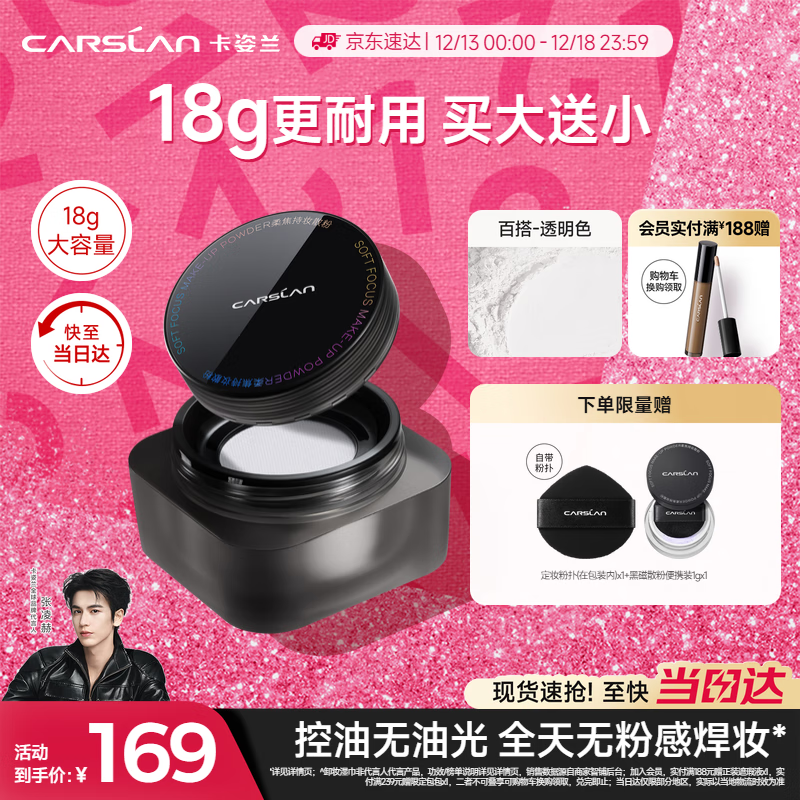 卡姿兰(Carslan)黑磁散粉定妆蜜粉饼控油遮瑕持久防汗大容量(透明色)18g 圣诞礼物