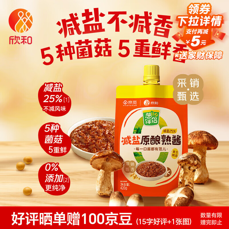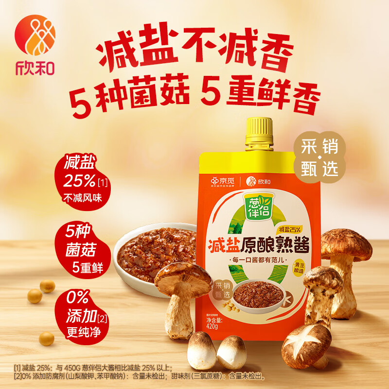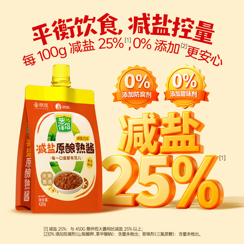 葱伴侣X京觅熟酱420g【减盐 黄豆酱】东北大酱拌面酱蘸酱欣和出品