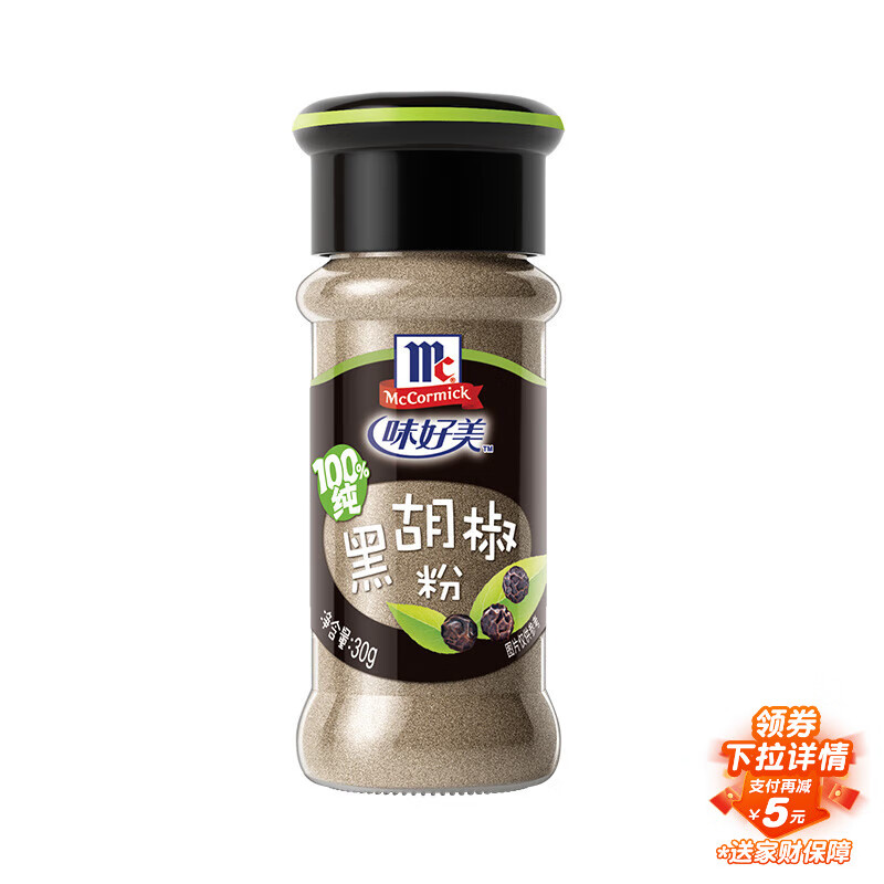 味好美(McCormicK)香辛料调料 纯黑胡椒粉 30g 玻璃瓶装 无添加 烧烤烹饪调味料