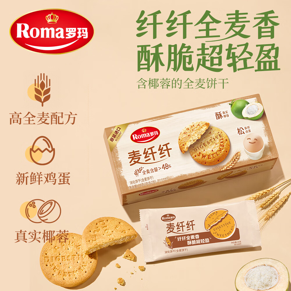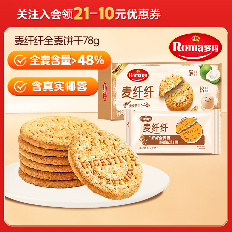 ROMA罗玛麦纤纤全麦饼干消化饼干78g 休闲零食早餐办公室下午茶